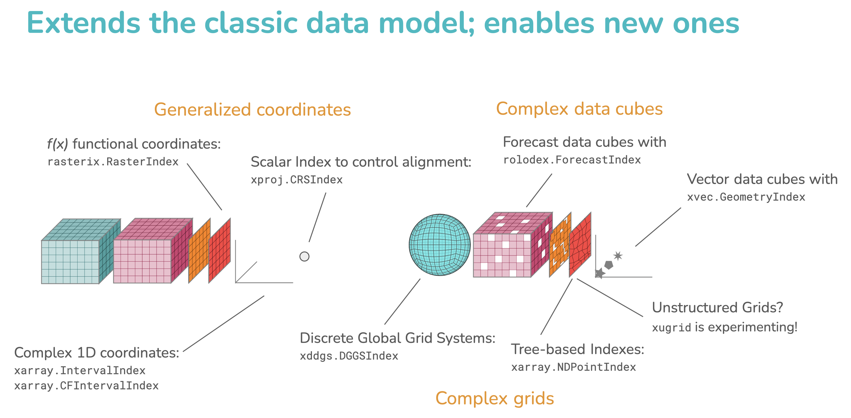 Have an idea for your own custom index? Check out this section of the Xarray documentation and please advertise what you're working on in our gallery of examples.